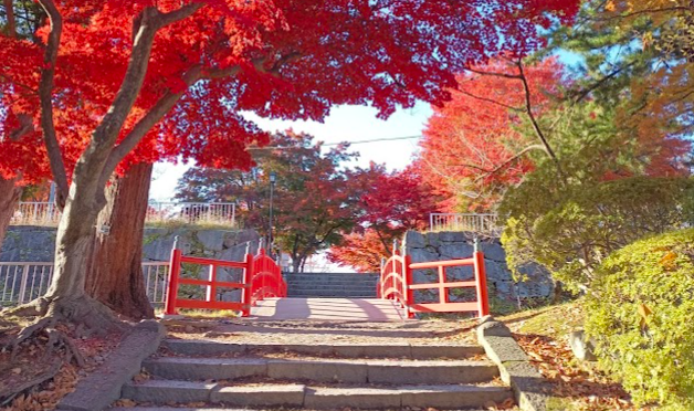 江戸時代の城跡にある公園。高台にあり、春は桜、秋は紅葉が美しい。