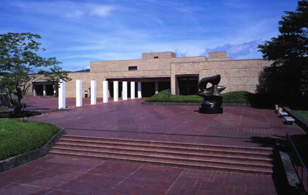 モダンな内装が施された美術館。日本の絵画と彫刻を中心に所蔵し、カフェと庭園を併設。