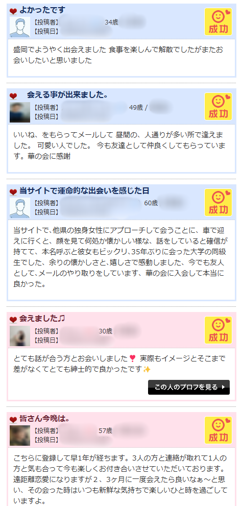 この度ここで知り合った方と結婚することになりました。 ほんとに、出会った頃は信じられませんでしたが今では幸せです。 いいサイトには、良い方が多いですね